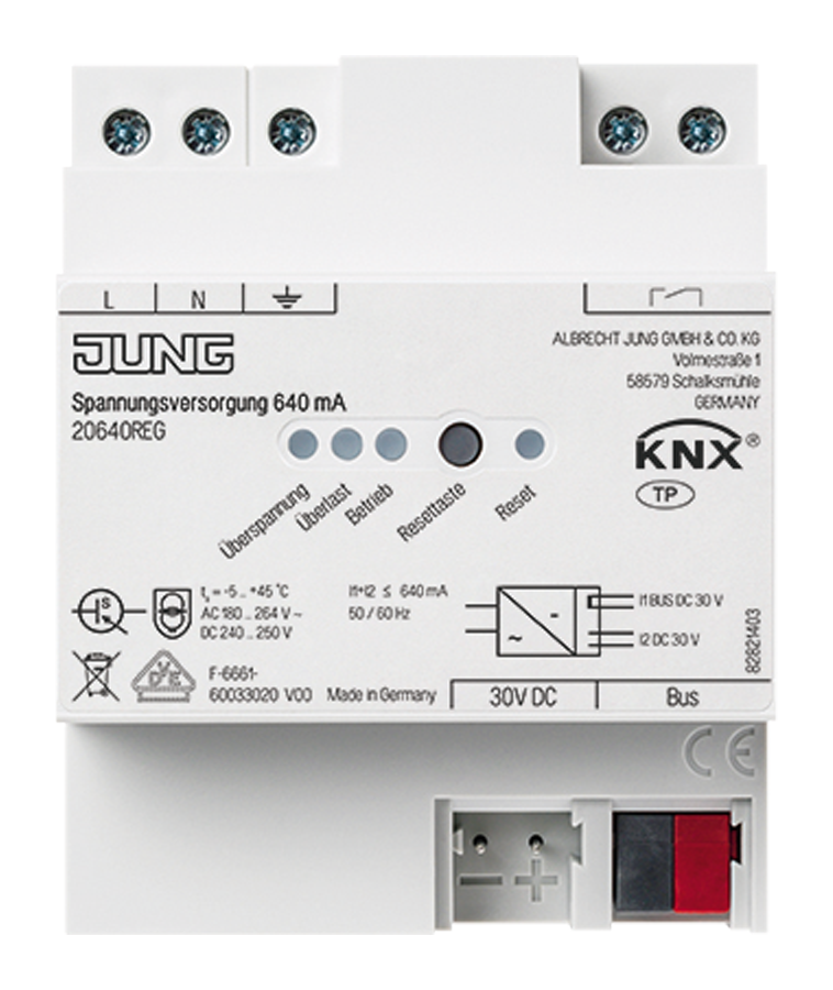 Вы можете купить товар JUNG KNX блок питания, 640mA, 20640REG с бесплатной доставкой по Санкт-Петербургу.