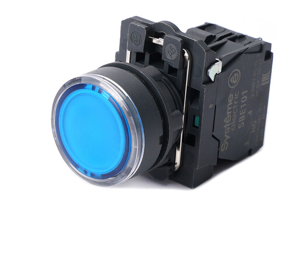 Вы можете купить товар Кнопка SB5 с подсветкой в сборе модульная 22мм синяя пластик 24ВDC 1НО, SB5AW36B1 с бесплатной доставкой по Санкт-Петербургу.