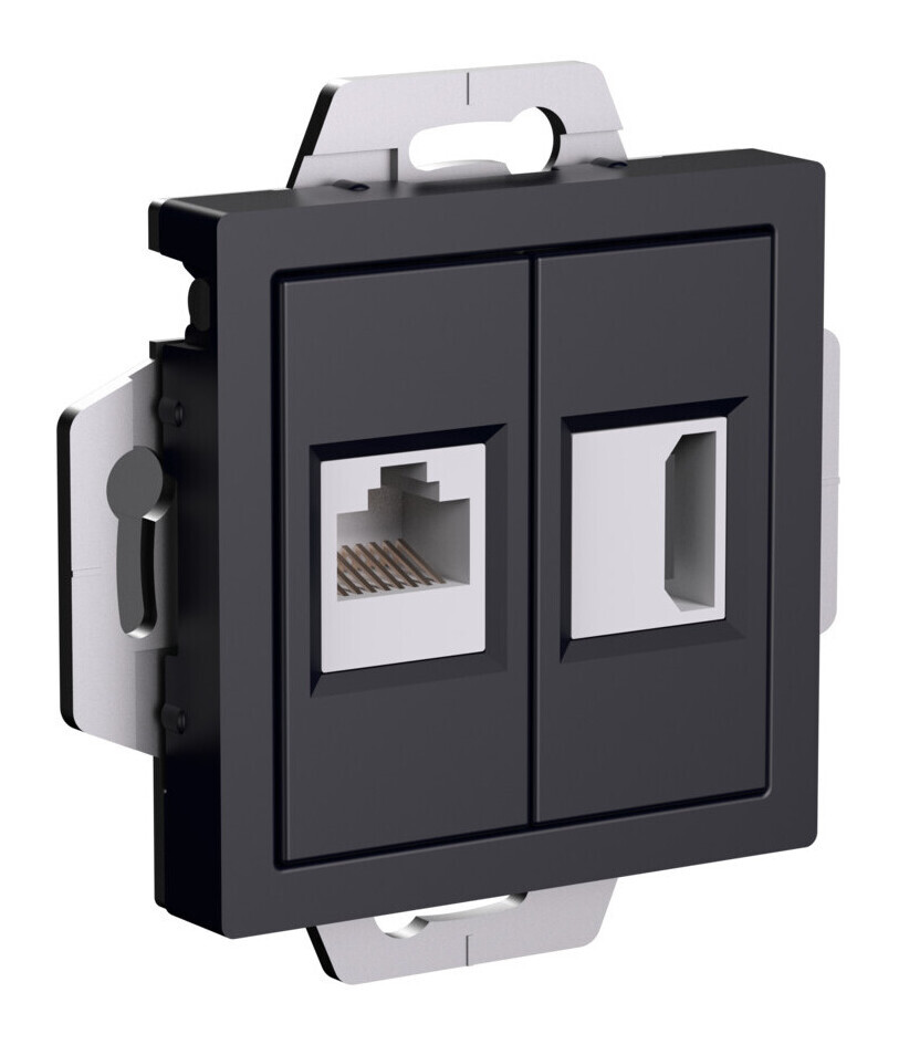 Вы можете купить товар Розетка HDMI+RJ45 Systeme Electric ATLASDESIGN, скрытый монтаж, карбон, ATN001082 с бесплатной доставкой по Санкт-Петербургу.