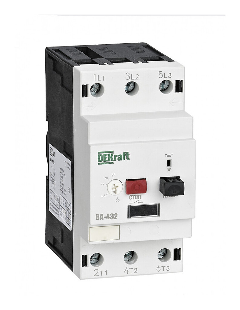 Вы можете купить товар Силовой автомат для защиты двигателя DEKraft ВА-430 63А 3P, термомагнитный расцепитель, 21241DEK с бесплатной доставкой по Санкт-Петербургу.
